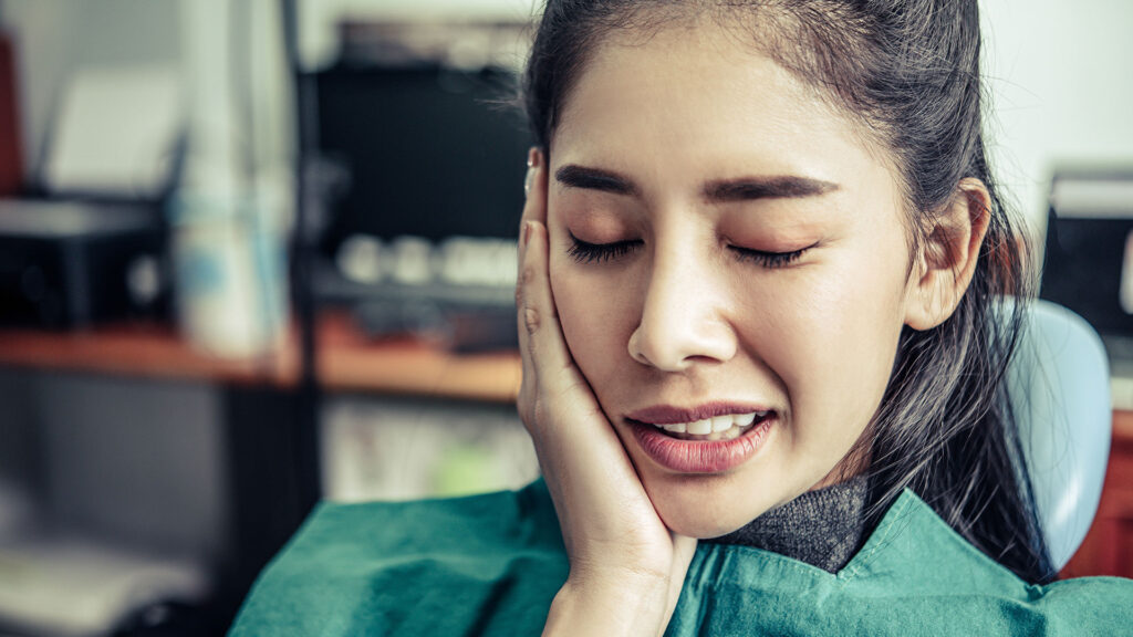 [RECOMMENDED IMAGE: Calm, close‑up photo of a patient gently holding one side of their face in a modern dental operatory]